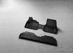 • Stepping in from the rain or snow? You need a set of All-season Floor Mats - High Wall Liners • Custom-made of durable and long-wearing material • Driver and front-passenger mats secure with a grommet hole/positioning hook system • Floor mat backing is designed to help position the mat in place